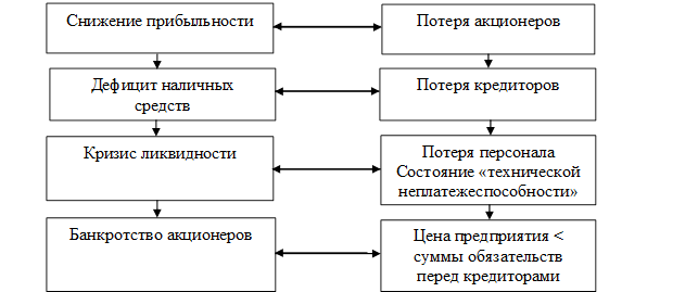 Потеря акционеров Потеря кредиторов Потеря ликвидности Банкротство акционеров |