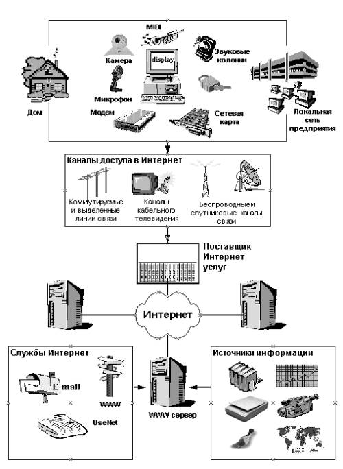 Для начала рассмотрим общую схему построения сети Интернет (рис 2.1).