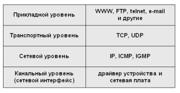 Рис. 2.2. Уровни стека протоколов TCP/IP
