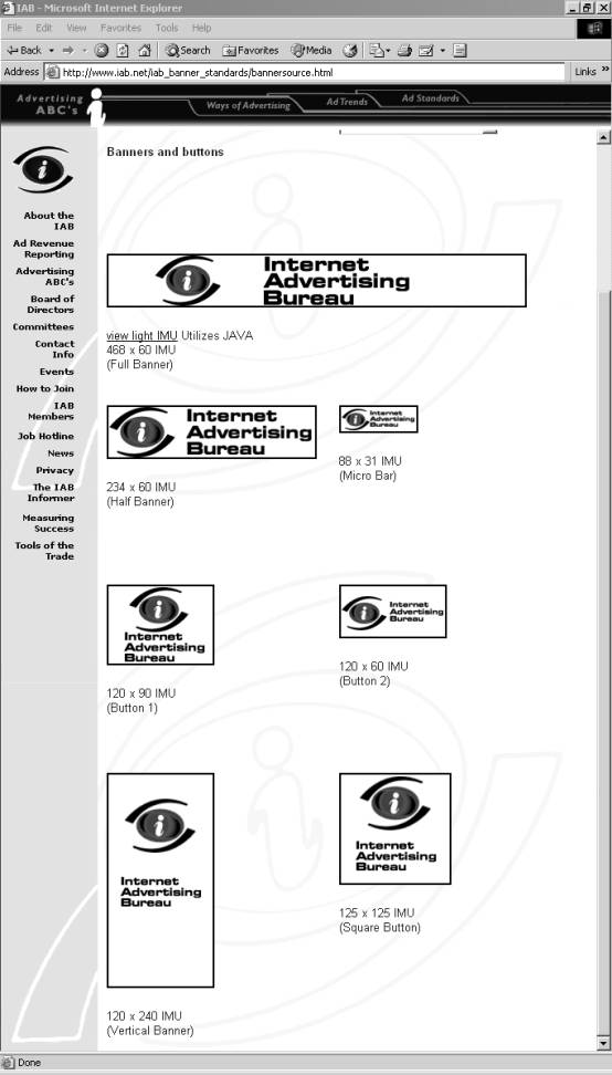 Следующим инструментом, получившим наиболее широкое распространение, является баннерная реклама. Она может выступать, как в роли имидж-рекламы, так и выполнять стимулирующие функции. Разница в этих случаях состоит только в ее исполнении, и, соответственно, в используемых методах оценки ее эффективности, которые описаны более подробно далее.