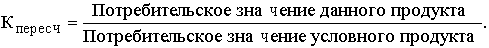 Для определения объема продукции в условных натуральных единицах измерения (qусл) следует объем продукции в натуральных единицах измерения (qнат) умножить на коэффициент пересчета(Кпересеч):