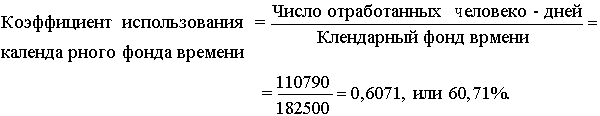Наряду с рассмотренными рассчитывается и интегральный показатель (коэффициент), характеризующий одновременное использование продолжительности и рабочего дня, и рабочего года. Он может быть найден следующим образом: