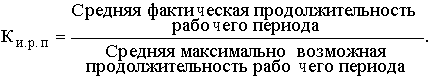 Степень использования рабочего периода отражает коэффициент использования рабочего периода (Ки.р.п). Он исчисляется следующим образом: