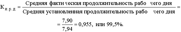 Таким образом, коэффициент использования рабочего дня (Ки.р.д) можно вычислить по формуле