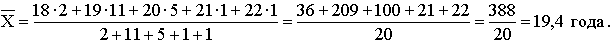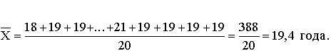 Приведем в качестве примера расчет среднего возраста студентов в группе из 20 человек: