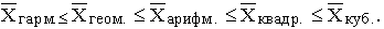Если рассчитать все виды средних для одних и тех же исходных данных, то значения их окажутся неодинаковыми. Здесь действует правило мажорантности средних: с увеличением показателя степени m увеличивается и соответствующая средняя величина: