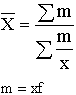 При повторяемости отдельных значений Х используют формулу средней арифметической взвешенной: