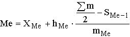 mMe – число наблюдений или объем взвешивающего признака в медианном интервале (также