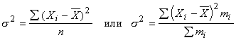 Дисперсия признака (s2) определяется на основе квадратической степенной средней: