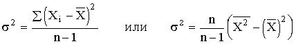 Если вариация оценивается по небольшому числу наблюдений, взятых из неограниченной генеральной совокупности, то и среднее значение признака определяется с некоторой погрешностью. Расчетная величина дисперсии оказывается смещенной в сторону уменьшения. Для получения несмещенной оценки выборочную дисперсию, полученную по приведенным ранее формулам, надо умножить на величину n / (n - 1). В итоге при малом числе наблюдений (< 30) дисперсию признака рекомендуется вычислять по формуле