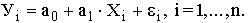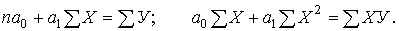 т.е. сумма квадратов отклонений эмпирических значений зависимой переменной от вычисленных по уравнению регрессии должна быть минимальной. Сумма квадратов отклонений является функцией параметров а0 и а1. Ее минимизация осуществляется решением системы уравнений