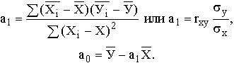 Параметры а0 и а1 оцениваются с помощью процедур, наибольшее распространение из которых получил метод наименьших квадратов. Его суть заключается в том, что наилучшие оценки ag и а, получают, когда
