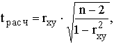 Если tрасч больше теоретического (табличного) значения критерия Стьюдента (tтабл) для заданного уровня вероятности и (n-2) степеней свободы, то можно утверждать, что rxy значимо.