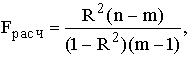Fрасч также должно быть больше Fтеор при v1 = (m-1) и v2 = (n-m) степенях свободы. В противном случае следует пересмотреть форму уравнения, перечень переменных и т.д.