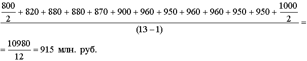 Исходя из этих данных, средняя годовая стоимость основных фондов составит