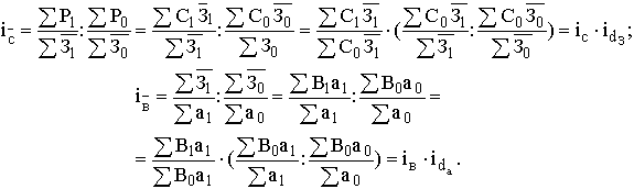 Аналогичным образом можно произвести разложение общего изменения товарных запасов за счет факторов качественного (В), количественного (Р) и структурного (dа).