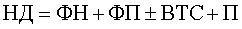 Метод конечного использования предполагает исчисление национального дохода суммированием всех элементов, образующих фонд накопления (ФН), и всех видов непроизводственного потребления (ФП) с учетом внешнеторгового сальдо (ВТС) и потерь (П):