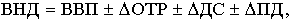 Валовой национальный доход равен сумме ВВП и доходов, полученных из «остального мира», без соответствующих им потоков, выплаченных «остальному миру» в форме оплаты труда работников (ОТР), доходов от собственности (ДС) (проценты. дивиденды, рента и пр.) и предпринимательского дохода (ПД):