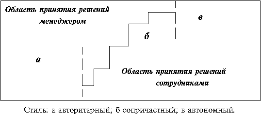 | Эффективность выполнения заданий | Быстрые решения. Решения, приближенные к оптимальным. Использование творческого потенциала только менеджера. Четкое распределение ролей. Зависимость от менеджера. Удовлетворенность авторитарно распределенных сотрудников |