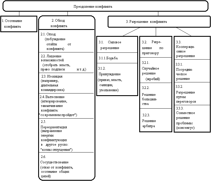 Методы преодоления конфликтов показаны на рис. 13.7.