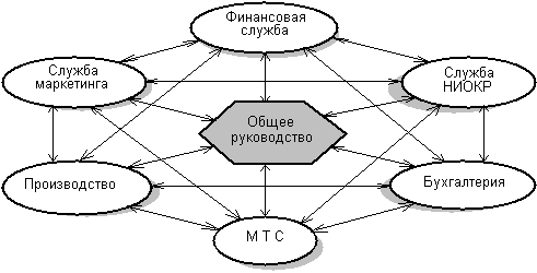 Такое деление на сферы деятельности носит условный характер и конкретизируется в общей и производственной организационной структурах. На нашем уровне рассмотрения эти сферы деятельности связаны основными информационными потоками в управлении предприятием.