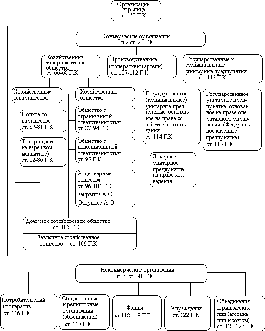 Организационно-правовые формы организации в соответствии с Гражданским кодексом РФ приведены на рис. 2.9.