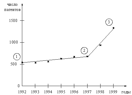 2) общая патентная активность за период с 1992 год по 1999 год – количество зарегистрированных патентов;