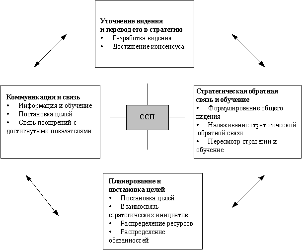 Четыре составляющих ССП позволяют достичь баланса между долговременными и краткосрочными целями, между желаемыми результатами и факторами их достижения, между жесткими объективными критериями и более мягкими субъективными показателями.