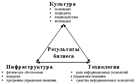 4. Широкий диапазон информационных технологий может использоваться для хранения и воспроизводства информации, поддержки совместной деятельности, поиска web-источников информации. Это важно, так как программы управления знаниями определяют выбор информационных технологий больше, чем наоборот.
