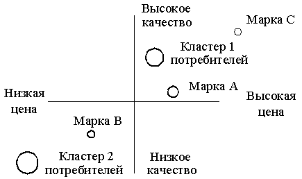 Рис. 5.7. Типичный пример позиционирования товара с учетом кластеров потребителей