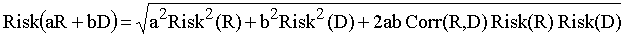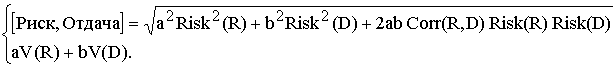В общем случае такая линейная зависимость не будет иметь место, так как риск связан с отдачей линейно только тогда, когда или один из рисков равен нулю, или когда отдачи двух видов НИОКР полностью коррелированны. В общем случае корреляция отдач двух компонентов портфеля растет в той мере, в какой на них распространяются одинаковые риски.