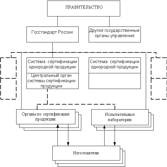 На рис.5.5 показана принципиальная схема управления сертификацией в нашем государстве, из которой видно, что основным управляющим и координирующим все работы по сертификации органом является Госстандарт России, который выполняет следующие основные функции: