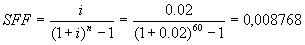 Рассчитаем ежемесячный фактор фонда возмещения, учитывая, что 5 лет это 60 месяцев, ставка процента равна 2% в месяц: