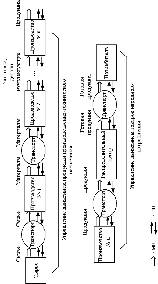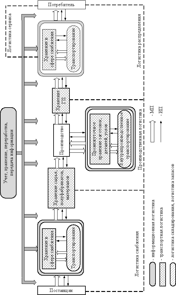 В ходе движения по логистической цепи (рис. 1.2) МП проходит через стадии закупки, поставки, хранения, производства, распределения и потребления ГП.