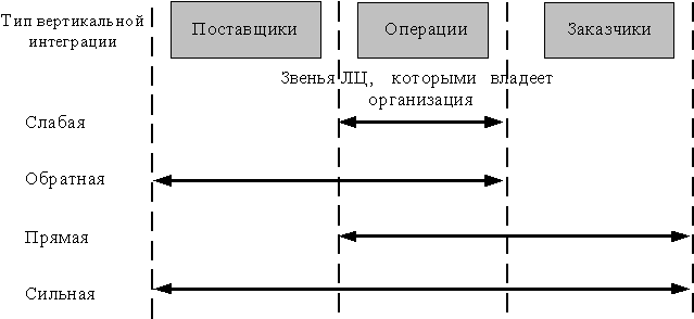 Вертикальная интеграция (рис. 6.2), уровень которой показывает в какой степени ЛЦ принадлежит одной организации и которая может проявляться в следующих формах.