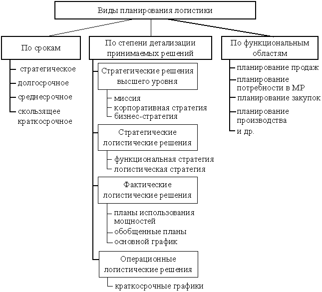 Содержание видов планирования по функциональным областям будет рассмотрено во второй части данного учебного пособия «Основы логистики. Функциональные области логистического управления».