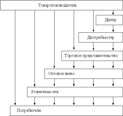 Как мы уже отмечали, по составу участников логистические цепи распределительной логистики различаются на двух-, трех- и многозвенные, но важно отметить, что формально они совпадают с каналами сбыта.