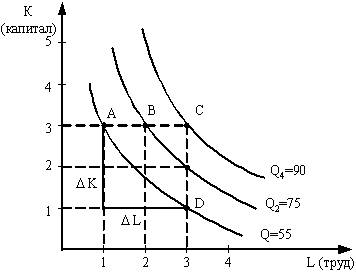 где DK и DL – изменения капитала и труда для отдельной изокванты, т.е. для постоянного Q.