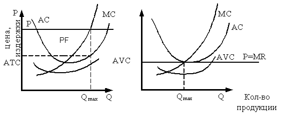 1. Если при оптимальном объеме производства Qmax, P=MC>AC,