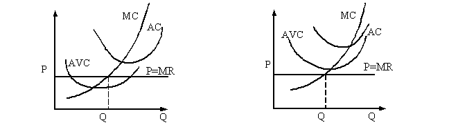 4. Если Р=МС<AVCmin, то фирма покинет данный конкурентный рынок в поисках более выгодной сферы деятельности (рис. 14.5).