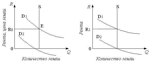 Рис. 21.1. Спрос и предложение земли: S – неэластичное предложение; |