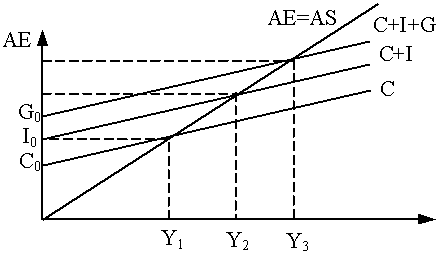Равновесный уровень Ye может колебаться в соответствии с изменением величины любого компонента совокупных расходов: Ye=C+I+G+Xn.