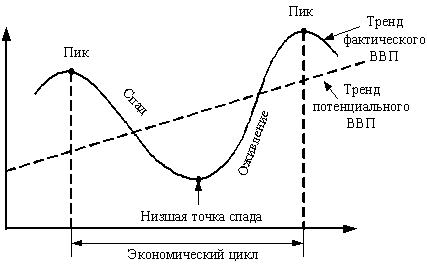 Экономические циклы – регулярные колебания в движении общественного производства, повторяющиеся за определенный промежуток времени (рис.37.1).