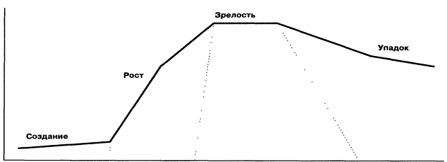 Организации зарождаются, развиваются, добиваются успехов, ослабевают и в конце концов прекращают свое существование. Умеющие адаптироваться – процветают, негибкие – исчезают. Какие-то организации развиваются быстрее других и делают свое дело лучше, чем другие. Руководитель должен знать, на каком этапе развития находится организация, и оценивать, насколько принятый стиль руководства соответствует этому этапу. Жизненный цикл организаций – определенная последовательность предсказуемых изменений состояний организации в течение времени. Применяя понятие жизненного цикла, можно видеть, что существуют отчетливые этапы, через которые проходят организации, и что переходы от одного этапа к другому являются предсказуемыми, а не случайными (рис.3.1).