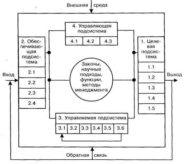 Инфраструктура менеджмента (структура системы менеджмента) – это совокупность научных подходов, принципов и методов, а также целевой, обеспечивающей, управляемой и управляющей подсистем (рис.5.1).