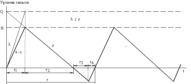 запас отсутствует -> невыполненные заявки накапливаются; 4)