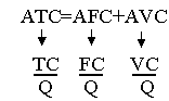 Средние издержки (АТС) подразделяются на средние постоянные (AFC) и средние переменные(AVC) издержки: