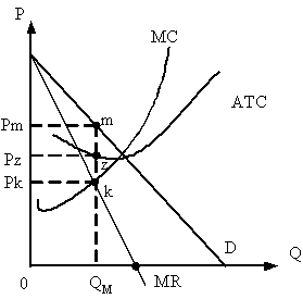 То есть чем более неэластичен спрос на продукцию монополиста, тем больше его монопольная власть, тем больше его прибыль. Так как цена монополиста Pm> Pz (себестоимость QM), величину прибыли характеризует прямоугольник PmmzPz.