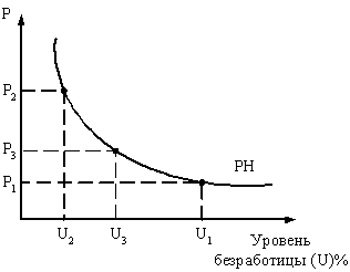 При этом цена возрастает до Р2, т.е. увеличивается инфляция. Если правительство проводит антиинфляционную политику цены снижаются до Р3, а безработица – до U3. Если инфляция продолжается более длительное время (свыше 5 лет), она может расти, несмотря на высокий уровень безработицы.