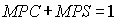 , следовательно MPC+MPS составляет прирост дохода